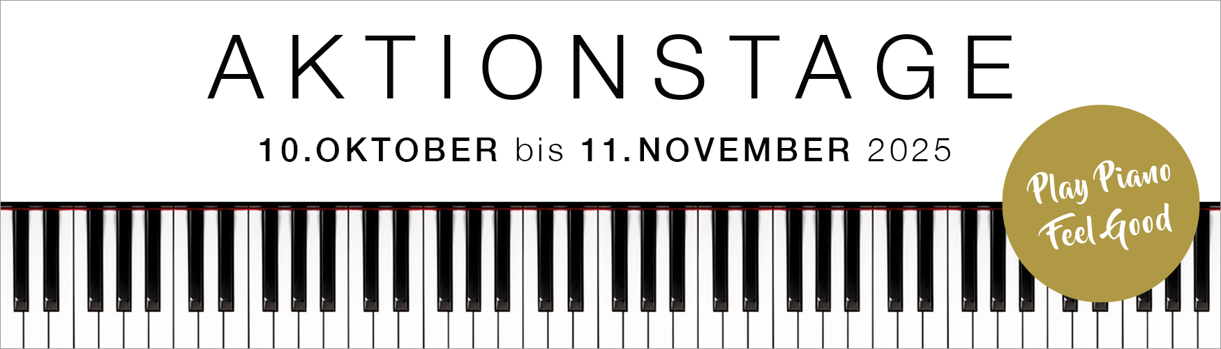 Der Herbst ist die ideale Jahreszeit, um sich wieder Zeit für Musik zu nehmen. Stellen Sie sich vor, wie wohltuend es ist, nach einem langen Tag am Klavier Platz zu nehmen – die Tasten unter den Fingern, der Klang erfüllt den Raum und schenkt Ihnen Entspannung, Inspiration und neue Energie. Entdecken Sie während unserer AKTIONSTAGE vom 10.10. bis 11.11. Klaviere, Flügel und Digitalpianos in erlesener Qualität – und profitieren Sie dabei von außergewöhnlich attraktiven Angeboten, die den Einstieg oder Aufstieg in die Welt des Klavierspielens so lohnenswert machen wie selten zuvor. Vereinbaren Sie jetzt Ihren unverbindlichen Beratungstermin und genießen Sie Ihr Probespiel in entspannter Atmosphäre. Wir freuen uns auf Ihren Besuch!
